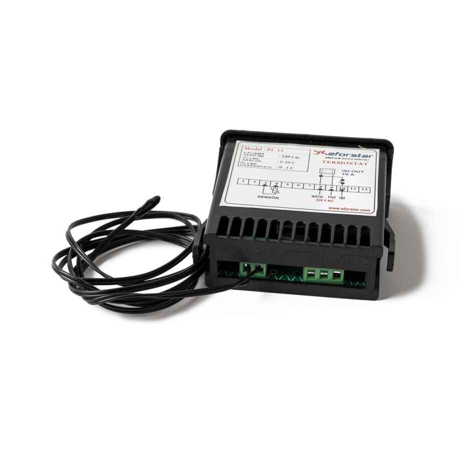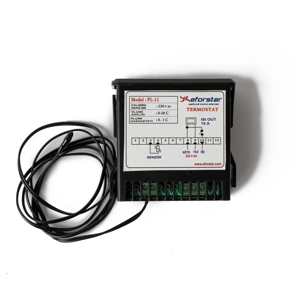Eforstar PL11 Isı Ölçme ve Kontrol Cihazı, kuluçka makinelerinde sıcaklığı hassas şekilde ölçen ve kontrol eden dayanıklı ve kullanımı kolay bir elektronik kontrol ünitesidir. Embriyo gelişimi için ideal sıcaklık sağlar.