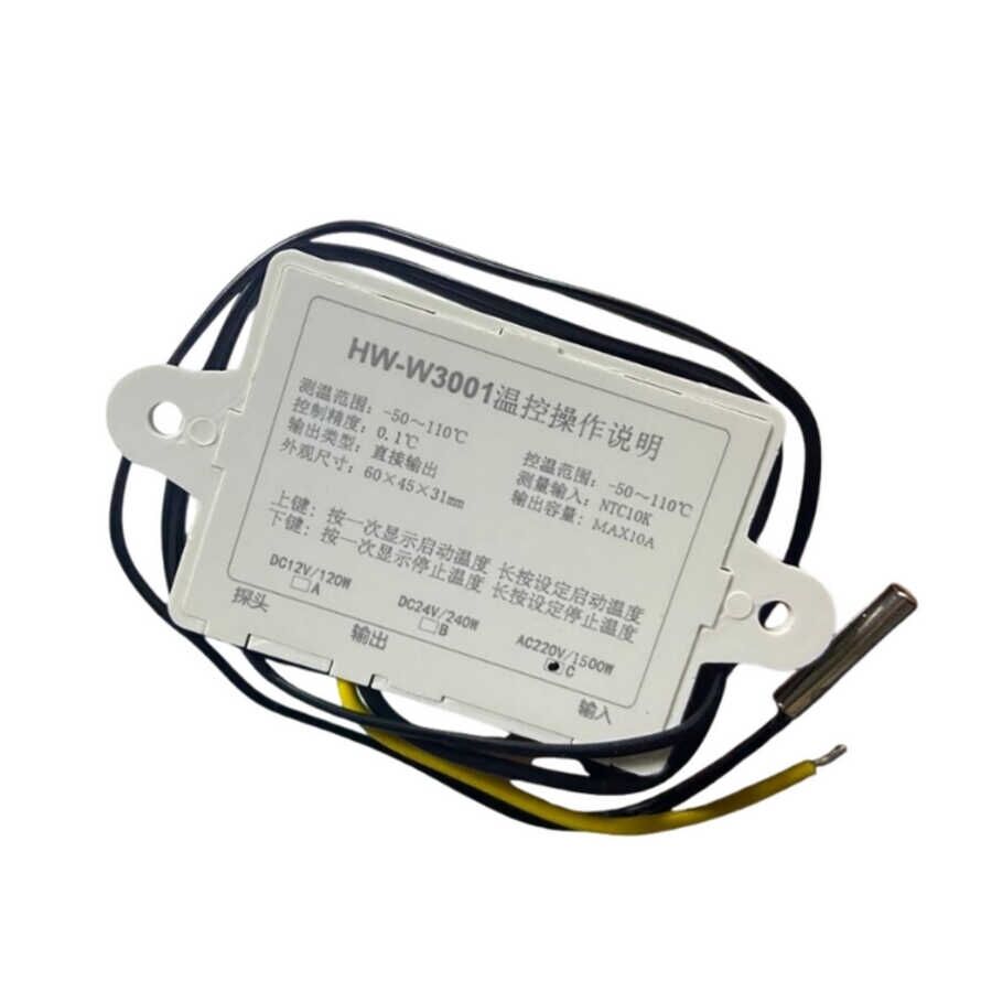 XH-W3001 Dijital Termostat, 220V AC ile çalışan, çıkışına bağlanan yükü ayarlanan sıcaklığa göre otomatik olarak açıp kapatan kompakt ve kullanımı kolay bir sıcaklık kontrol cihazıdır. Direkt çıkış yapısı sayesinde ek röleye ihtiyaç duymaz; ısıtıcı, soğutucu veya fan gibi cihazlar doğrudan bağlanabilir.